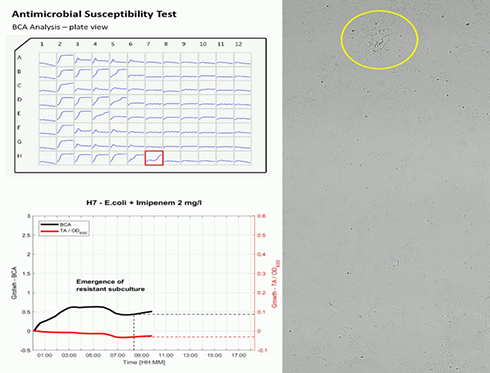 由于超高的靈敏度,系統能夠深入了解樣本動態,因為單細胞水平的變化是量化的。例如通過觀察生長曲線的形狀,可以很容易地瀏覽整塊培養板來快速識別出抗性亞種群。