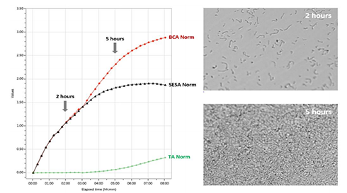 oCelloScope微生物生長動態監測系統配上一個流動池(見左下圖),就可用于研究真菌、細菌和生物膜的非靜態動力學和形態學。