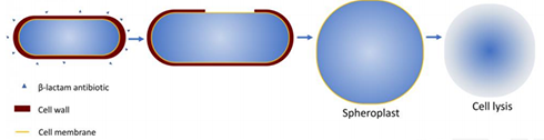 肽聚糖合成抑制劑,如亞胺培南,一種β-內酰胺抗生素,當暴露于亞MIC或MIC濃度時,會導致細菌膨脹并形成大而脆弱的球形體。