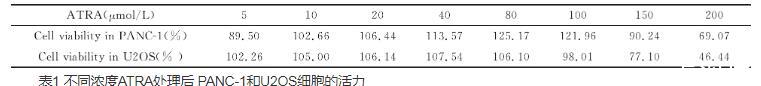 不同濃度的?全反式維甲酸對(duì)胰腺癌PANC-1和骨肉瘤U2OS細(xì)胞生長(zhǎng)影響