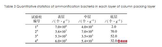 Table 3 Quantitative statistics of ammonification bacteria in each layer of column packing layer