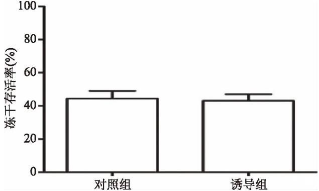 如圖7所示,誘導組與對照組相比,其凍干存活率無明顯差異,說明溫度誘導只影響菌體的生長速率,并不影響菌體的凍干存活率。