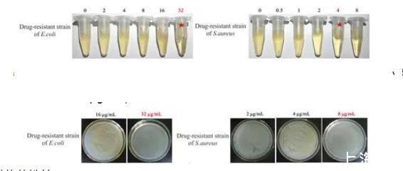 圖7 Cu2-xSe NCs對耐藥菌株的MIC(Cu2-xSe NCs濃度單位為μg/mL)