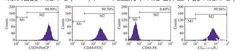 圖2流式細胞術檢測瘢痕疙瘩MSCs表面標志物的結果