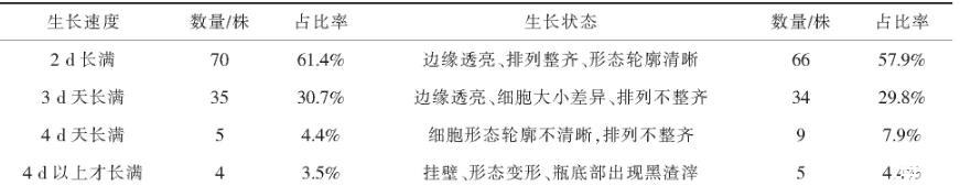表1 MDCK單克隆細胞生長速度和狀態統計表
