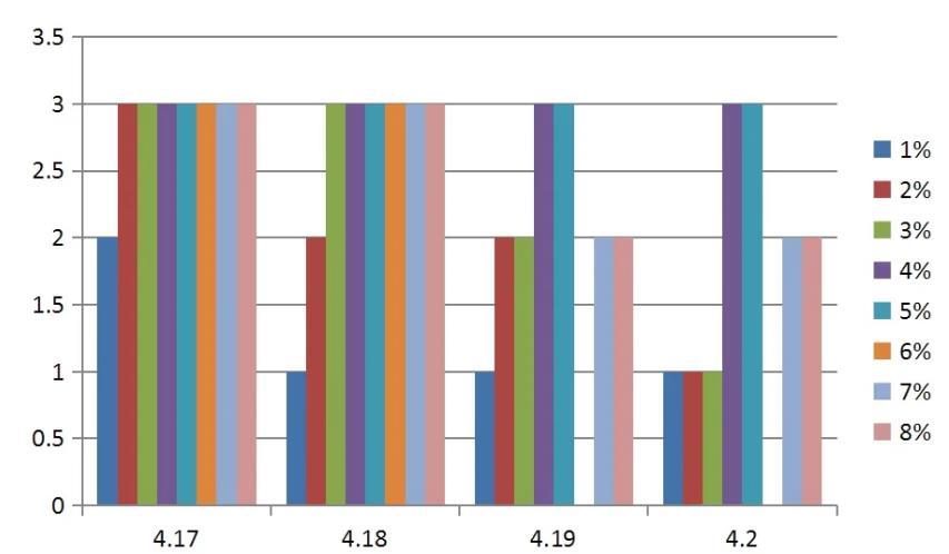 3.數據記錄與分析。從4月17日開始觀察細胞生長情況并如實記錄,記錄結果如表1。為方便比較數據之間的差異,特將實驗觀察結果表述為較差、差、良好三種情況,并記錄為表2。使用Microsoft excel 2010軟件處理數據,以時間為橫坐標,細胞生長情況為縱坐標,用圖表工具中的柱狀圖對血清比例與細胞生長之間的相互關系進行分析,并作圖(圖1)。