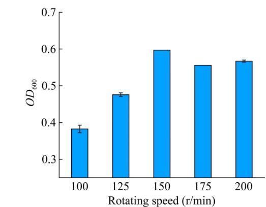 圖5搖床轉(zhuǎn)速對(duì)菌株CSW-1生長(zhǎng)的影響