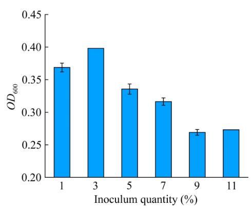 圖3接種量對(duì)菌株CSW-1生長(zhǎng)的影響