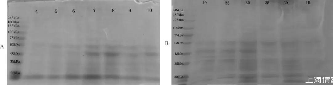 由圖5可知,不同pH和鹽度環境下,在35~63 ku均有明顯的條帶變化。將條帶切割送生工檢測,鑒定蛋白。通過生工質譜檢測鑒定,評分最高的蛋白為HSP60(60 ku熱休克蛋白)。
