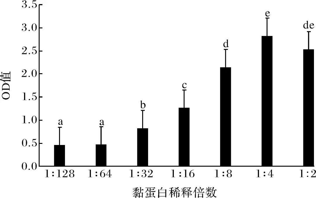 所得標準曲線的回歸方程:y=2.246 1x+0.040 4,R2=0.994 1。依據標準曲線將外膜蛋白質量濃度調整到0.1 mg/mL進行SDS-PAGE試驗。