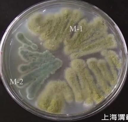 分離純化獲得兩種霉菌,分別命名為M-1和M-2,菌落形態如下圖。經初步鑒定M-1為米曲霉、M-2為綠色木霉。