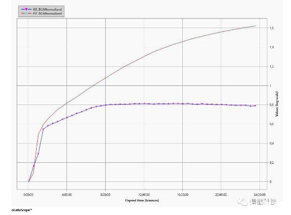 圖2、采用Biosense微生物動態監測系統中的BCA歸一化算法測量膿腫分枝桿菌生長曲線(三份)