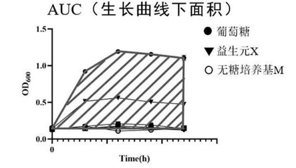 步驟二,以待評益生元作為培養基唯一碳源對選取的菌株進行培養,葡萄糖碳源培養基作為陽性對照組,無糖培養基作為空白組;