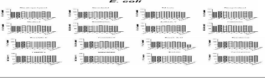 圖2、從oCelloScope微生物動態監測系統顯示示出的細胞形態所獲得的圖像。大腸桿菌DA14781用厄他培南(A)DA14781,大腸桿菌DA19482和環丙沙星(B)和多粘菌素E(C),和銅綠假單胞菌ATCC 27853與粘菌素(D)和美羅培南(E)在0、2、4和24小時。