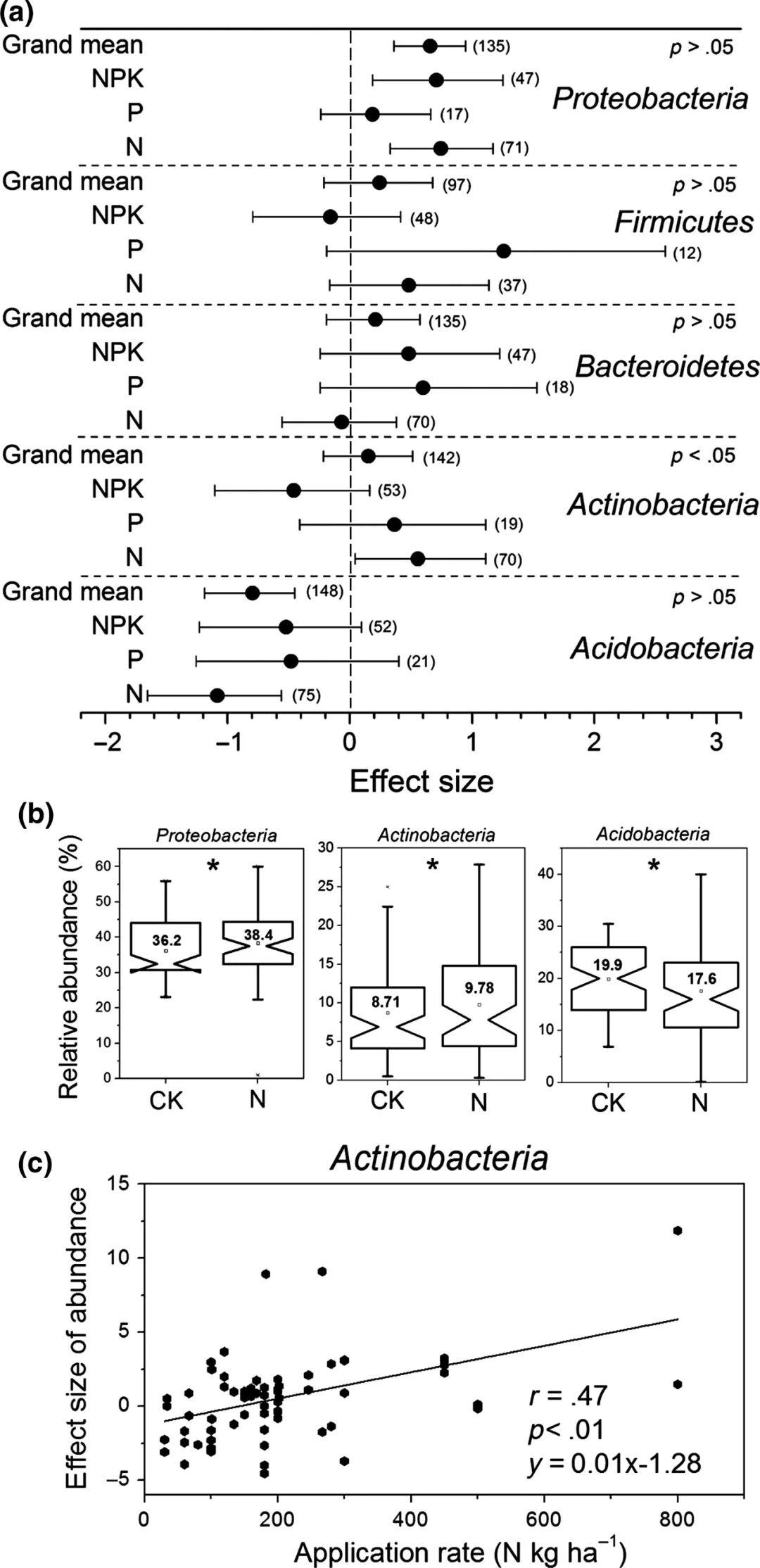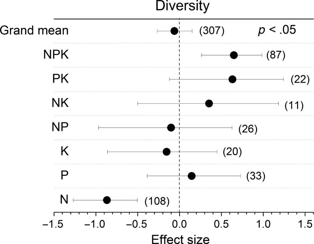 摘要:人為的長期高氮素(N)輸入可能導(dǎo)致土壤酸化和作物減產(chǎn),但地下土壤微生物群落對長期單施氮肥或與磷(P)和鉀(K)肥配施的響應(yīng)尚不清楚。本研究通過匯總?cè)驍?shù)據(jù)集進(jìn)行Meta分析,探討了長期施氮和NPK肥對土壤細(xì)菌多樣性和群落組成的影響。