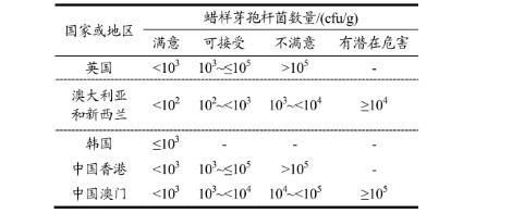 表1國內外即食食品中蠟樣芽孢桿菌限量要求