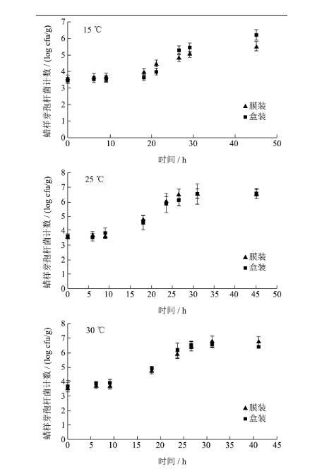 2.3在不同溫度及包裝條件對草莓中蠟樣芽孢桿菌生長的影響
