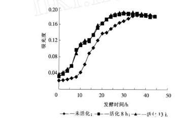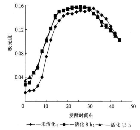 圖2活化時間對發酵液610 nm處吸光度的影響