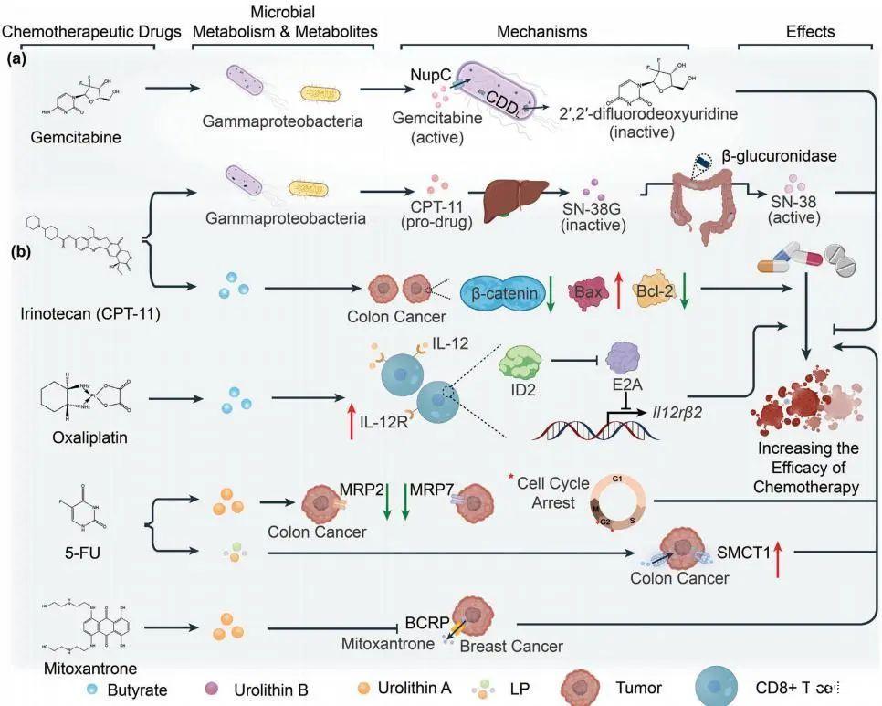 圖2腸道微生物及其代謝產物參與藥物代謝,改變毒性、抗腫瘤療效和耐受性
