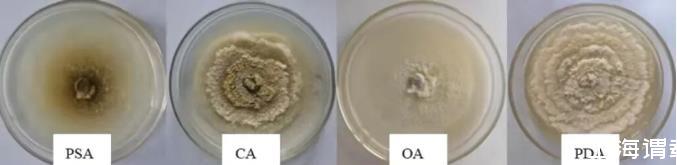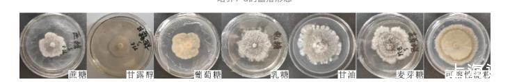 圖4柑桔砂皮病葉分離所得S2菌株在不同碳源Czapek培養基上培養10 d的菌落形態