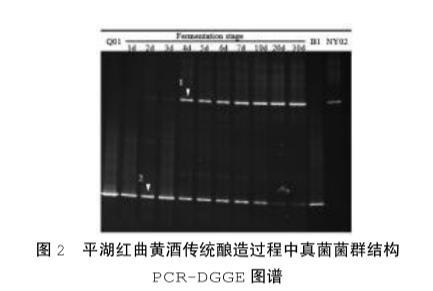 圖2平湖紅曲黃酒傳統(tǒng)釀造過(guò)程中真菌菌群結(jié)構(gòu)PCR-DGGE圖譜