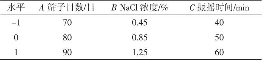 表1因素水平表