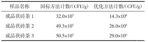 表4國標方法和優化方法對不同茯磚茶的計數結果
