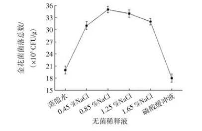 圖2無菌稀釋液對金花菌菌落總數的影響