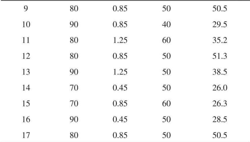 表2響應面設計方案及試驗結果
