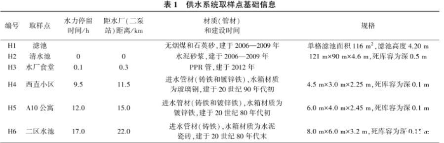 根據(jù)該市的區(qū)域供水管網(wǎng)特征和水質特點,選取具有代表性的供水管網(wǎng)開展對比分析,該供水系統(tǒng)取樣點基礎信息見表1。