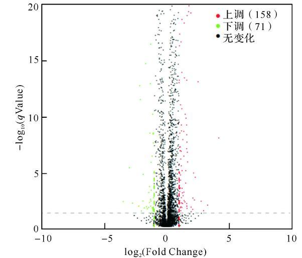 圖1兩組間表達差異火山圖