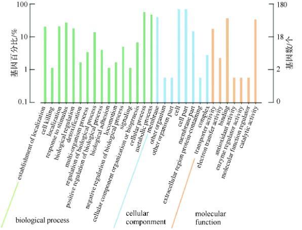 圖2差異基因GO注釋分類柱狀圖