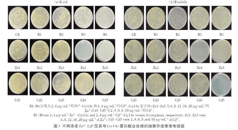 2.3 Cry1Ac蛋白及其與Zn2+、Cd2+聯合暴露下菌落平板生長狀況觀察