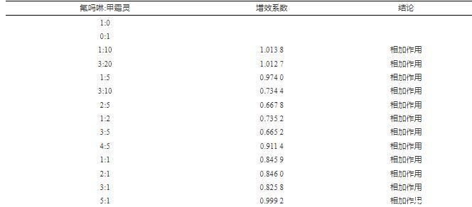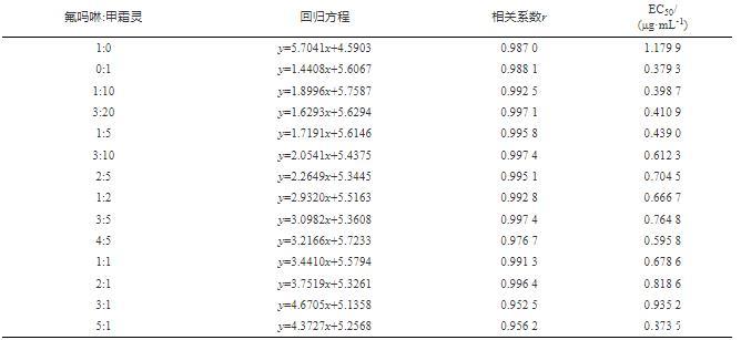 表3氟嗎啉與甲霜靈復配對煙草黑脛病菌的聯合毒力