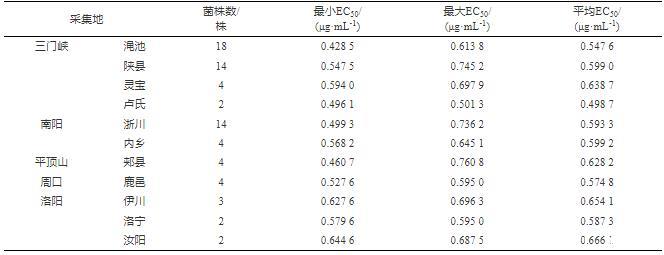表1河南省不同地區煙草黑脛病菌對氟嗎啉的敏感性比較