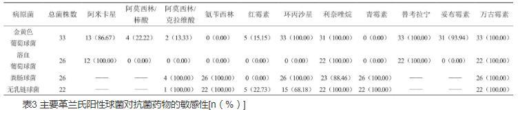 表2主要革蘭氏陽性球菌對抗菌藥物的敏感性[n(%)]