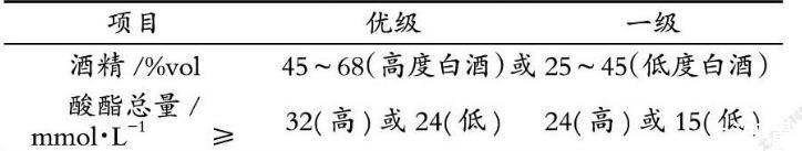 根據(jù)國家標準《特香型白酒》(GB/T 20823-2017)要求,國家規(guī)定的特香型白酒的酒精度和酸酯總量的要求見下表。