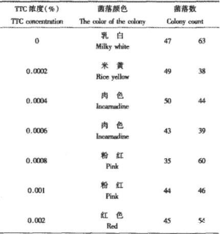 2.1大腸埃希菌在不同TTC濃度的計數(shù)瓊脂培養(yǎng)基中的生長情況