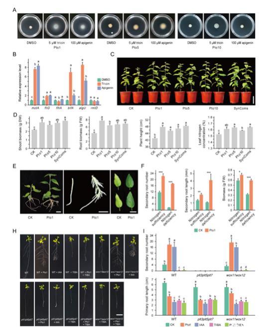 圖1:tricin和apigenin合同通路招募的假單胞菌促進了楊樹的氮利用和次生根生長