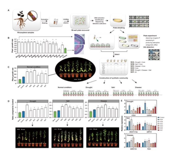 圖2:構建合成微生物群落協助楊樹抵御逆境脅迫
