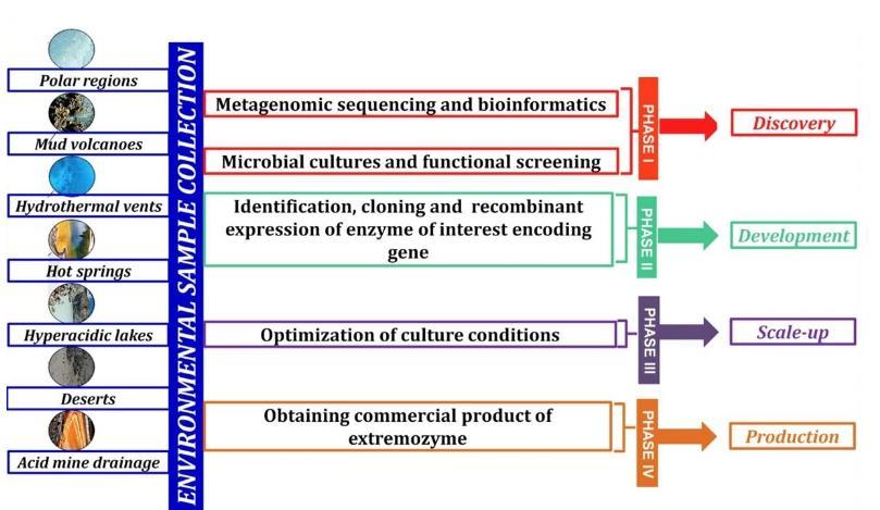 極端微生物(Extremophiles)能夠在高熱、高鹽、高壓等極端環(huán)境下產(chǎn)生具有穩(wěn)定性和催化活性的酶,在生物技術(shù)、紡織、制藥和食品工業(yè)領(lǐng)域有廣泛的應(yīng)用前景。組學(xué)方法的進(jìn)步為探索不可培養(yǎng)的極端微生物中的酶和相關(guān)基因提供了新的方法。作者在本文中討論了極端微生物的多樣性,探索極端酶(Extremozymes)的組學(xué)方法,并總結(jié)了極端微生物及其產(chǎn)生極端酶的潛在工業(yè)應(yīng)用。極端酶有望成為促進(jìn)工業(yè)環(huán)境友好和可持續(xù)發(fā)展的基石。