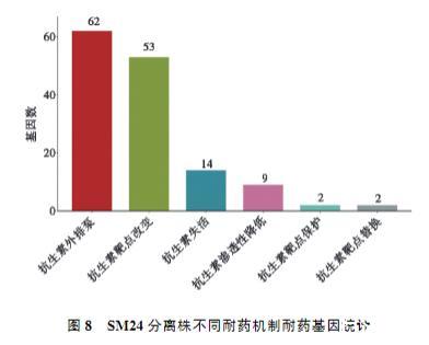 圖8 SM24分離株不同耐藥機制耐藥基因統計