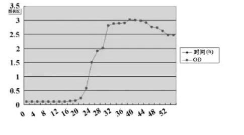 在培養(yǎng)條件不變的情況下,每2 h取樣測定其在530 nm處的OD值,然后以時間為橫坐標,OD的對數(shù)為縱坐標可形成一條生長曲線。白色念珠菌生長的遲緩期為0-16 h,對數(shù)生長期為16-30 h,之后進入穩(wěn)定期和衰退期。生長曲線如圖2: