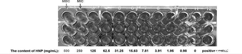 圖1呼寧散(HNP)對雞肺源大腸桿菌的MIC和MBC