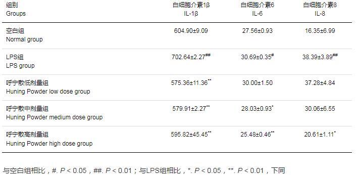 2.7呼寧散對LPS致DF-1細胞炎癥因子含量的影響