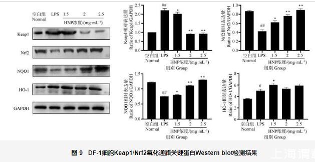 圖9 DF-1細胞Keap1/Nrf2氧化通路關鍵蛋白Western blot檢測結果
