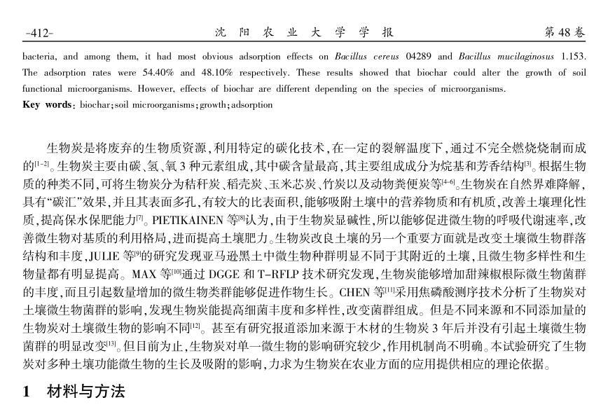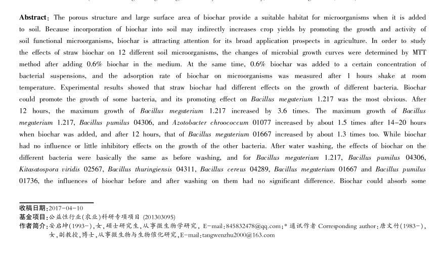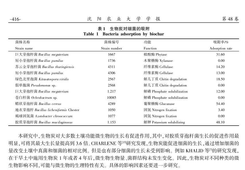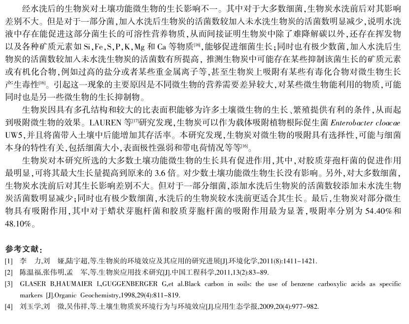 秸稈生物炭對土壤功能微生物生長及吸附的影響