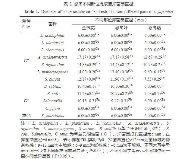 表1忍冬不同部位提取液抑菌圈直徑