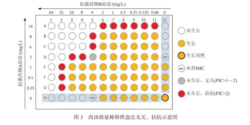 圖3肉湯微量稀釋棋盤法無關、拮抗示意圖