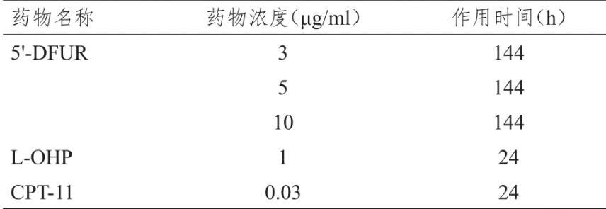 口服給藥后,CAP首先被肝臟中羧酸酯酶代謝為5'-脫氧-5-氟胞苷(5'-deoxy-5-fluorocytidine,5'-DFCR),然后通過肝臟和腫瘤組織中的胞苷脫氨酶將其轉(zhuǎn)化為5'-脫氧-5-氟尿苷(5'-deoxy-5-fluorouridine,5'-DFUR),最后在肝臟和腫瘤組織中胸苷磷酸化酶(thymidine phosphorylase,TP)的作用下,將5'-DFUR進一步代謝為5-FU發(fā)揮抗腫瘤作用。研究證實,TP是一種與腫瘤相關(guān)的血管生成因子,在腫瘤細胞中的表達高于正常細胞,這可能是一些研究者報道的惡性腫瘤優(yōu)先將5'-DFUR轉(zhuǎn)化為5-FU的重要原因之一。TP的活性決定了CAP的抗腫瘤效力。由于CAP代謝過程復(fù)雜不僅需要多種酶同時參與,并且需要肝臟起始代謝,體外代謝比較受限,無法實現(xiàn)CAP的體外CD-DST檢測及評價,而5'-DFUR僅需在腫瘤細胞中經(jīng)TP關(guān)鍵酶的一步代謝就可轉(zhuǎn)化為發(fā)揮抗腫瘤作用的5-FU,故本研究選擇CAP的代謝產(chǎn)物5'-DFUR進行CAP的CD-DST檢測條件探索。